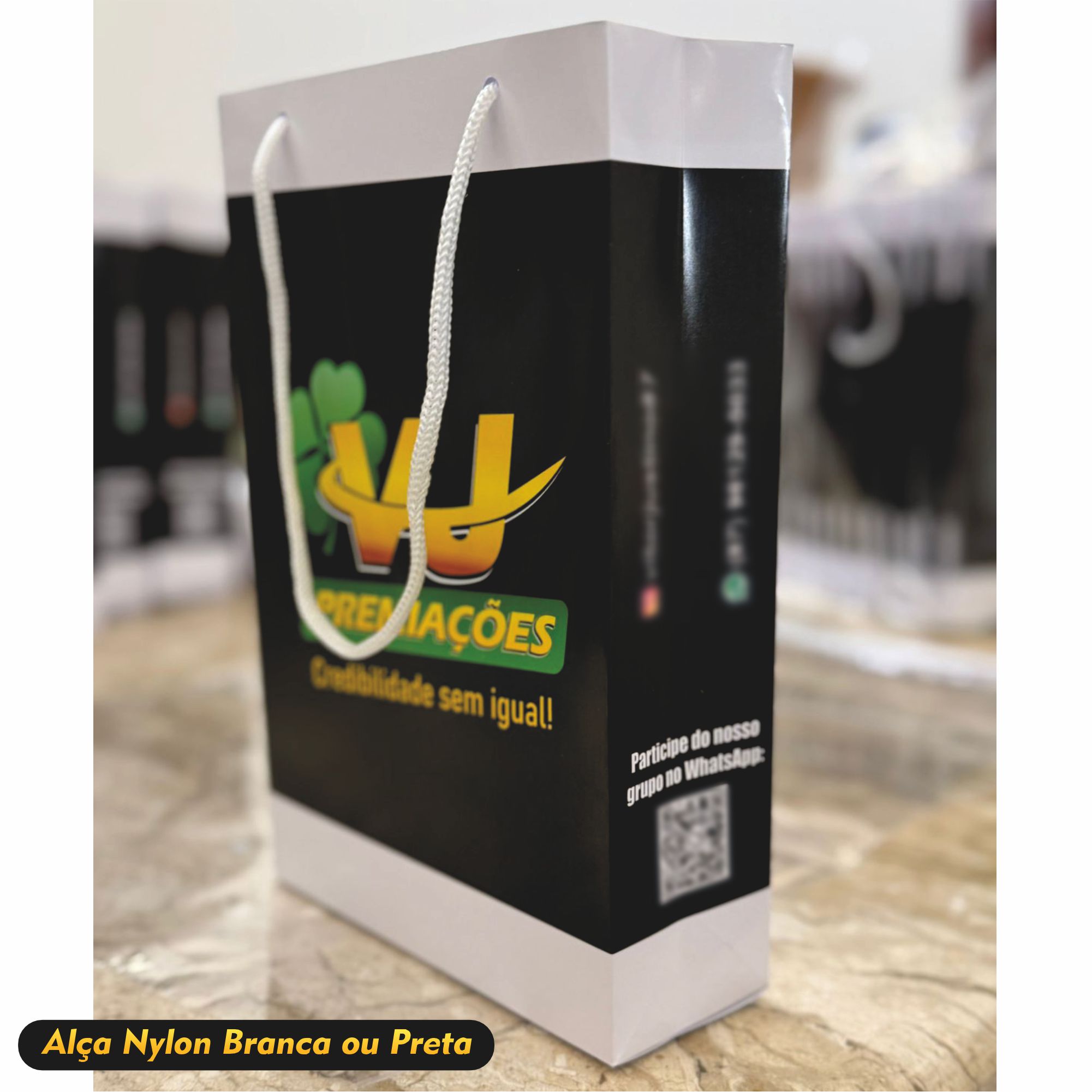✔ 100% personalizáveis com a informação que você quiser, nos dois lados da sacola e também nas duas laterais.